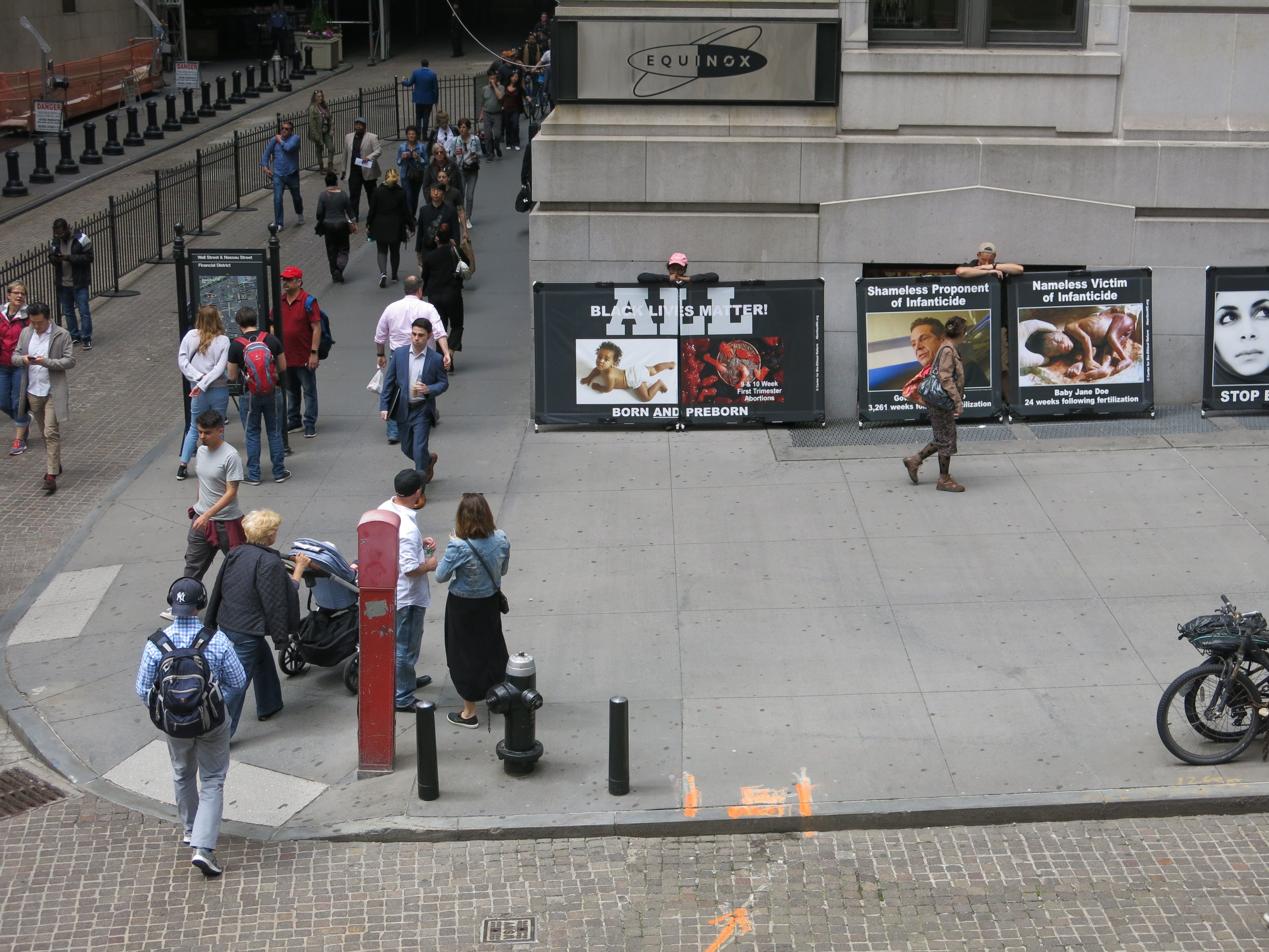 Our next target was the New York Stock Exchange. Not only could we reach some of the most influential policy makers in the country, we could reach people from all over the world. Wall Street was a steady stream of people, from the moment we arrived until the moment we left. It is safe to say they had never seen such graphically disruptive imagery as passersby seemed stunned and speechless.