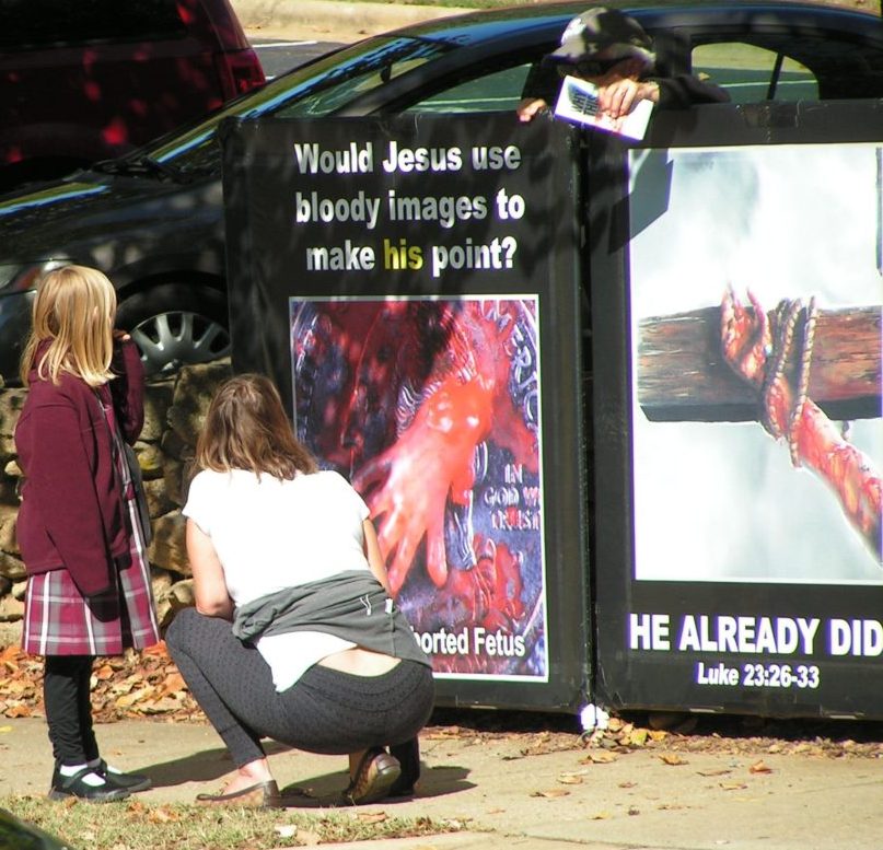 Mom mystery. A mom walked up with her elementary school aged child and began showing her daughter the photos. We were sure she was on our side and wanted her daughter to know the truth of abortion. But in fact, “I used to be pro-life until I grew up and got smarter. I’ve had an abortion. I know friends who wish they had aborted their disabled child.” We need to be praying for this mom and her young family.