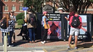 As part of our Revival Project Tour in Fall 2019, CBR stopped by the Southeastern Baptist Theological Seminary to talk to Christian students about modern-day child sacrifice. Though not on the campus grounds, our location on the sidewalks directly in front of the main entrance allowed us ample visibility.